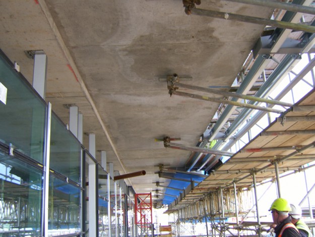 Client: Walls Scaffolding: 6000m2 Mix of Kwiksrage and Tube & Fitting scaffold for glass installation. Scaffold horse punched out off floor to work on above floors. Scaffold Platforms on Xbeams spans to assist installation of glass.