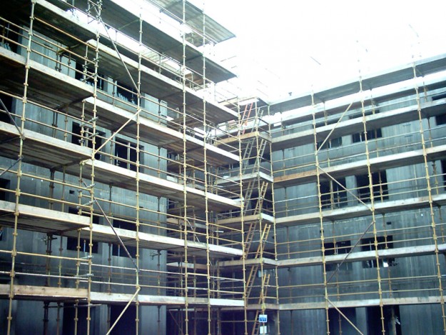 Client: Collen Scaffolding: 9000m2 Duration: 40 weeks Kwikstage Scaffold to external of building progressing with building structure, scaffold to internal of liftshafts and staircores.